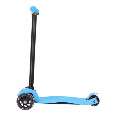 Kids scooter Ridd stunt step blauw, aluminium en hoogwaardig plastic en daardoor geschikt voor recreatief gebruik. Het is een super stevige step voor de jongere kinderen. Dankzij de ultrasterkte maar uitermate lichte constructie en de dubbele achterwielen wordt het rijden veel aangenamer. De wielen zijn 2*118mm PU voor en 2*76 mm PU achter en zeer solide en wendbaar. Ook zit er LED verlichting in alle wielen die het rijden op de step nog leuker maken! Het stuur wordt er van bovenaf in geklikt en naar de juiste hoogte versteld waarna hij direct klaar is voor gebruik. Hij is voorzien van een RVS voetrem en heeft een anti slip dek om op te staan. Dit product voldoet aan de EN14619 veiligheidsnorm. Wij adviseren voor de veiligheid valbescherming en een helm.Kenmerken: Een professionele 4-wiel kinder scooter met LED lampjes in de wielen, ontworpen voor kinderen en recreatieve doeleinden. Ideaal voor kinderen vanaf 3+ jaar. Onderscheidt zich door zeer lichte (2,4kg) en toch extreem sterke en solide constructie (tot 80kg). Rubberen handgrepen, uiteinden voorzien van stootbescherming. ABEC 7 kogellagers. Gemaakt van hoogwaardig staal, aluminium en plastic. RVS voetrem op het achterwiel Breedte stuur 25 cm Max hoogte stuurstang 90 cm, wel verstelbaar Maximale belasting 80 kg Inclusief handleiding.