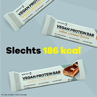 Plant power on-the-go Ben je op zoek naar een plantaardige eiwitreep die perfect past in jouw vegan leefstijl? Dan is onze Vegan Protein Bar precies wat je zoekt. Deze bar zit boordevol voedingsstoffen, met maar liefst 20 gram puur koudgeperste plantaardige eiwitten en 21 gram vezels. En het beste van alles? Geen toegevoegde suikers*! Vegan Protein Bars zijn gezoet met stevia-extract en sucralose. Wat maakt onze Vegan Protein Bar zo goed? Onze Vegan Protein Bar is gemaakt met 100% plantaardige eiwitten en daardoor geschikt voor vegetariërs en veganisten. De eiwitten in de reep zijn koudgeperst, wat betekent dat hun natuurlijke kwaliteit behouden blijft. Dankzij het hoge eiwit- en vezelgehalte van de reep, kun je er na een Vegan Protein Bar weer even tegenaan! Vegan Protein Bar bevat soja-eiwit, een plantaardige eiwitbron die bekendstaat om zijn hoge opneembaarheid. De eiwitten in de reep ondersteunen snel herstel van je spieren na sport. Wanneer kun je Vegan Protein Bar nemen? Of je
