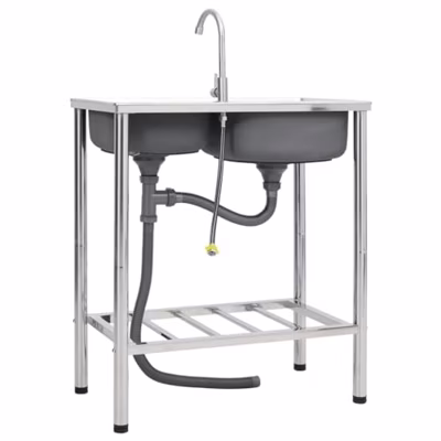 VidaXL Campinggootsteen dubbele bakken met kraan roestvrij staal