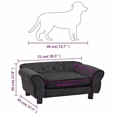 VidaXL Hondenbank 72x45x30 cm pluche donkergrijs