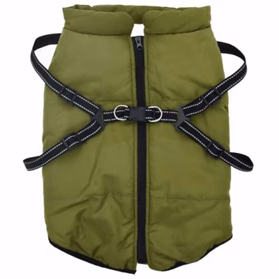 Houd je hond warm op koude dagen met deze knusse hondenjas met ingebouwd harnasje!