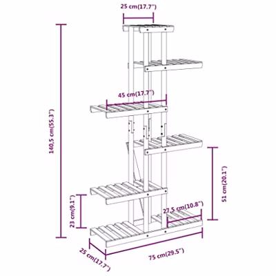 VidaXL Plantenstandaard 75x25x140,5 cm massief vurenhout