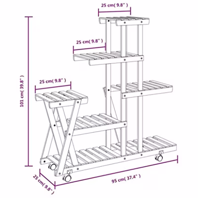VidaXL Plantenstandaard met wielen 95x25x101 cm massief vurenhout