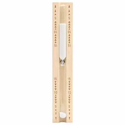 - Zandloper van 15 minuten: 15 minuten is een populaire tijdsduur voor een saunabezoek. De roterende timer bevat ook markeringen van 5 en 10 minuten voor kortere sessies.