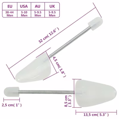 - Multifunctioneel: de kunststof schoenspanner houdt je schoenen in goede vorm, voorkomt kreuken, deuken en onaangename geurtjes en zorgt ervoor dat ze langer meegaan.