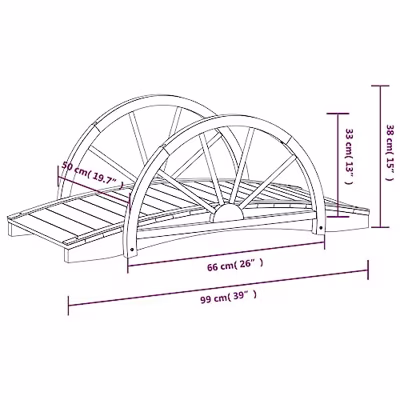 VidaXL Tuinbrug met half wiel 99x50x38 cm massief vurenhout