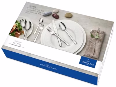 Het bestek van Villeroy & Boch komt uit in verschillende sets, waaronder de Villeroy & Boch Bestekset Victor 68-delig. Het bestek heeft een moderne en strakke uistraling door de vlakke onderkant. Ook houdt het bestek prettig vast ondanks de strakke lijnen die het bestek heeft. De 68-delige set bestaat uit: