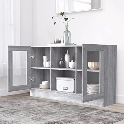 Vitrinekast 120x30,5x70 cm bewerkt hout grijs sonoma eiken