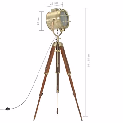 Verlicht je woonruimte met onze driepoot vloerlamp in retro stijl! Dankzij het vintage ontwerp is deze lamp een moderne blikvanger in elk interieur. De kantelbare, draaibare stalen lampenkap met messing afwerking verspreidt een warm en sfeervol licht. De stevige poten zijn gemaakt van massief mangohout met een bruine afwerking. Bovendien kan de hoogte naar behoefte worden aangepast van 94 cm tot 165 cm. Deze Hollywood lamp is eenvoudig te monteren. De vrijstaande lamp heeft een E27 fitting voor een peertje van maximaal 25 watt. Je kunt E27 peertjes met verschillende lichtkleuren kiezen en installeren. Opmerking: de peertjes zijn niet inbegrepen. Dit apparaat is niet bedoeld voor gebruik door personen (waaronder kinderen) met verminderde fysieke, zintuiglijke of mentale capaciteiten of een gebrek aan ervaring en kennis, tenzij ze onder toezicht staan van of zijn geïnstrueerd over het gebruik van het apparaat door een persoon die verantwoordelijk is voor hun veiligheid.