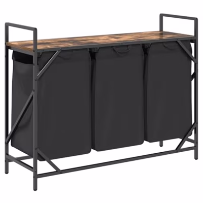 Wasmand 3 vakken met plank gerookt eikenkleurig