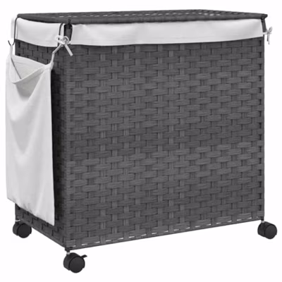 Wasmand op wielen 60x35x60,5 cm rattan grijs