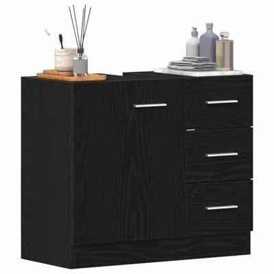 Wastafelkast 63x30x54 cm spaanplaat zwart eikenkleurig