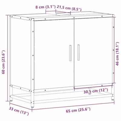 Wastafelkast 65x33x60 cm bewerkt hout bruin eikenkleur