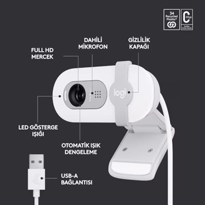Webcam - Full HD 1080p - LOGITECH - Brio 100 - Geïntegreerde microfoon - Gebroken wit - (960-001617)