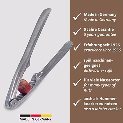 Met deWestmark Hercules notenkraker van lichtgewicht aluminium kraak je met gemak verschillende soorten noten en amandelen. Door de grote uitsparing kunnennoten van verschillendeformaten worden gekraakt. Na gebruik kan de notenkraker eenvoudig in de vaatwasser worden gereinigd.