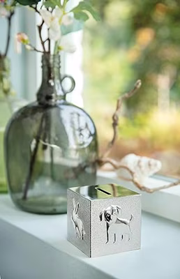 Zilverstad 6025060 Spaarpot Kubus Huisdieren verzilverd gelakt 85 x 85 x 76 mm
