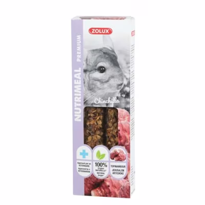 Zolux Nutrimeal Stick Chinchilla Aardpeer 2stDe Zolux Nutrimeal Stick Chinchilla Aardpeer 2st is aanvullende diervoeding voor chinchilla's van natuurlijke ingrediënten met aardpeer en ophangclip. Deze lekkernij bevat stukjes aardpeer op een natuurlijk houten stokje. Jouw chinchilla is met deze snack actief bezig met het eten van het stokje af te krijgen. Daarnaast slijten de tandjes op een natuurlijke wijze door het intensieve gebruik om het eten los te krijgen. Dit is erg belangrijk, chinchillatanden blijven namelijk altijd groeien. Door te knagen blijven de tanden op de juiste lengte en kunnen gebitsproblemen voorkomen worden. Deze Nutrimeal stick is aanvullende diervoeding voor ratten en muizen.- Aanvullende diervoeding voor chinchilla's- Ondersteunt het onderhouden van de tanden- Met ophangclipInhoud: 2 stuksSamenstelling: Tarwemeel, tarwe, gierst, gedehydrateerde aardpeer 14%, havervlokken, havergruttenAnalytische bestanddelen: Eiwit 11,96%, vet 2,81%, ruwe as 2,00%, vezels 3,11%EAN: 3336022092899