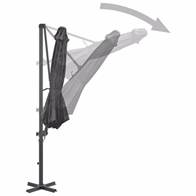 Deze elegante hangende parasol is de perfecte keuze om wat schaduw te creëren en jezelf te beschermen tegen de schadelijke uv-straling van de zon. Het parasoldoek is gemaakt van UV-beschermend en anti-vervagend polyester waardoor het je optimale bescherming tegen de zon biedt en het gemakkelijk schoon te maken is. De parasol beschikt over een stevige kruisvoet die bijdraagt aan de stabiliteit. Het exclusieve ontwerp van deze parasol stelt je in staat om de parasol te kantelen en 360 graden te draaien om zo de zon te kunnen blokkeren. De sterke aluminium paal, samen met de 8 duurzame baleinen, maakt de parasol zeer stabiel en duurzaam. Onze tuinparasol kan eenvoudig geopend en gesloten worden dankzij het zwengelmechanisme. Het product is eenvoudig te monteren. Let op, wij adviseren om het doek te behandelen met een waterdichtmakende spray als hij wordt blootgesteld aan zware regenval.
