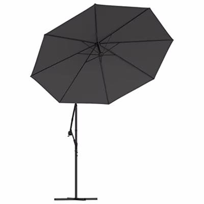 Deze elegante, hangende parasol met LED-verlichting is de perfecte keuze om wat schaduw te creëren en jezelf te beschermen tegen de schadelijke UV-straling van de zon. Het parasoldoek is gemaakt van UV-beschermend en anti-vervagend polyester, waardoor het je optimale bescherming tegen de zon biedt en gemakkelijk schoon te maken is. Het beschikt over 24 solar aangedreven LED's die automatisch je buitenruimte verlichten en een gezellige en romantische sfeer creëren als de zon ondergaat. De parasol wordt ook geleverd met een stevige kruisvoet die voor stabiliteit zorgt. Het exclusieve ontwerp van deze parasol stelt je in staat om de parasol te kantelen om zo de zon te blokkeren terwijl deze langzaam richting de horizon beweegt. De sterke stalen paal, samen met de 8 duurzame baleinen, maakt de parasol zeer stabiel en duurzaam. Onze tuinparasol kan eenvoudig geopend en gesloten worden dankzij het zwengelmechanisme. Het product is eenvoudig te monteren. Let op, wij adviseren de parasolstof te behandelen met een waterdichtmakende spray als hij wordt blootgesteld aan zware regenval.